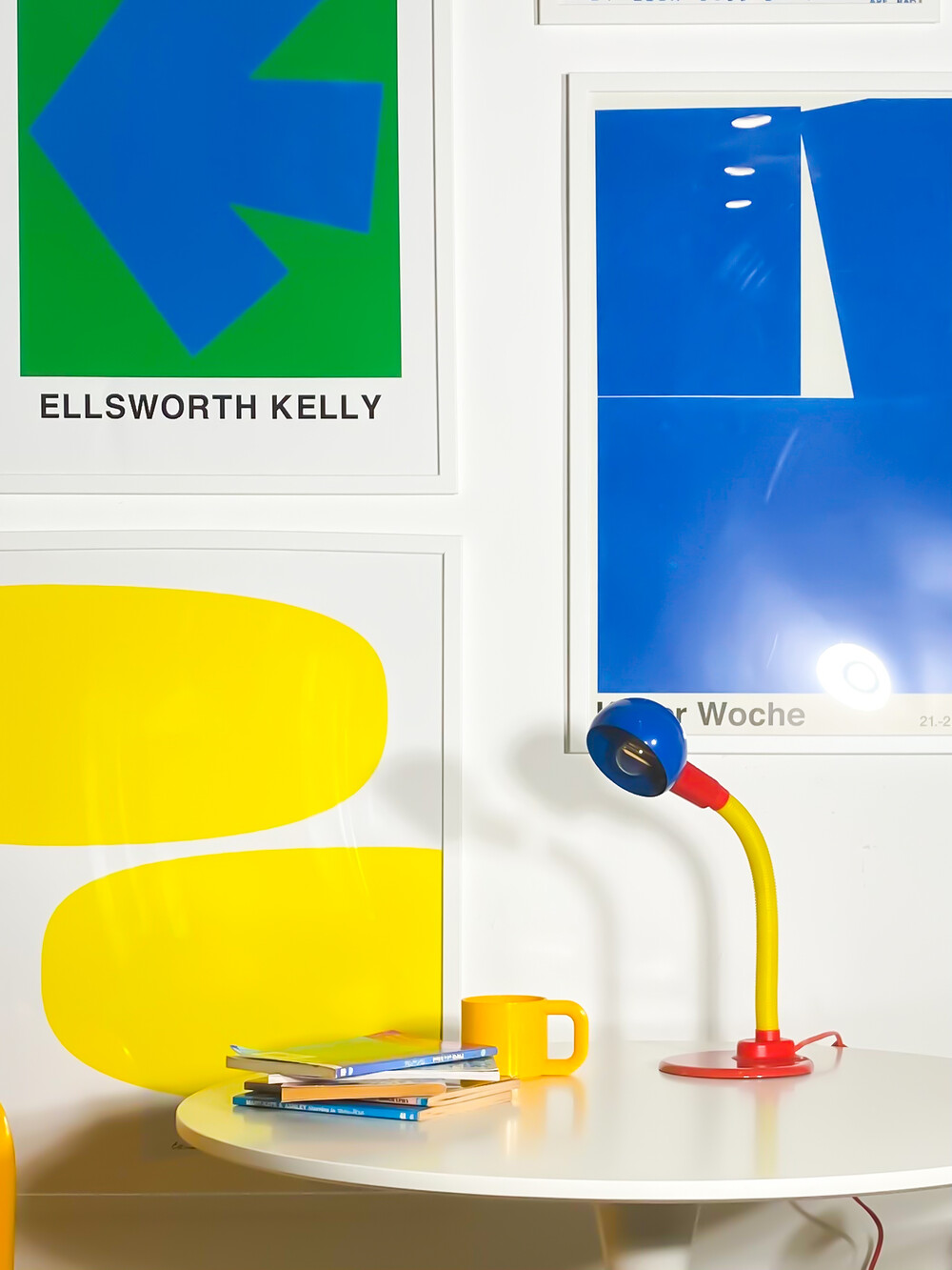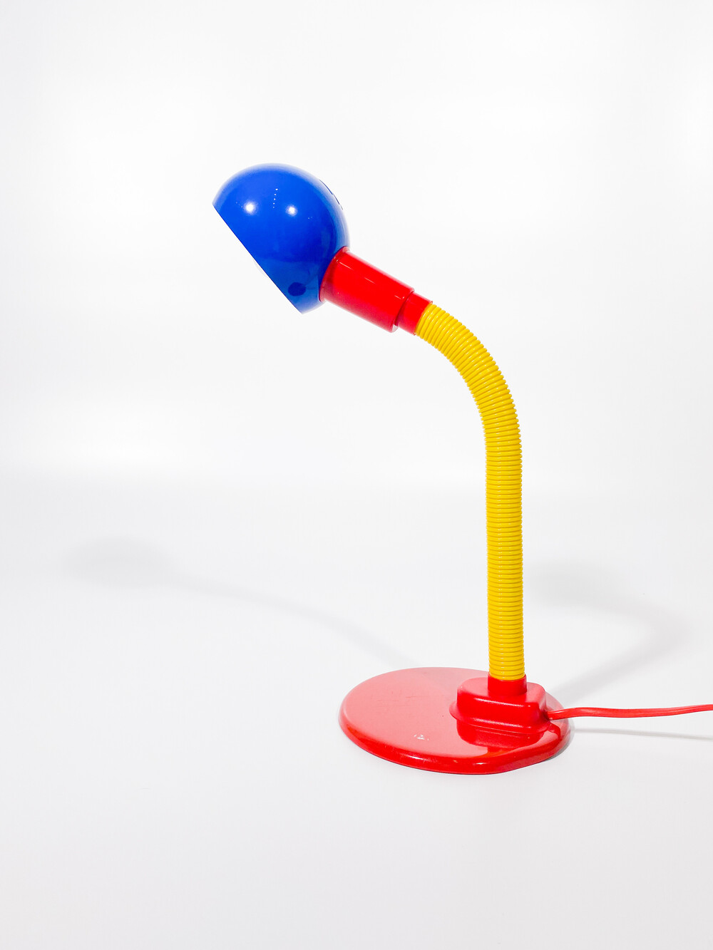 1980년대에 생산된 멤피스 스타일의 탁상 램프입니다. 감각적인 색조합으로 이루어져 있어 인테리어 포인트로 사용하기 좋은 아이템입니다.