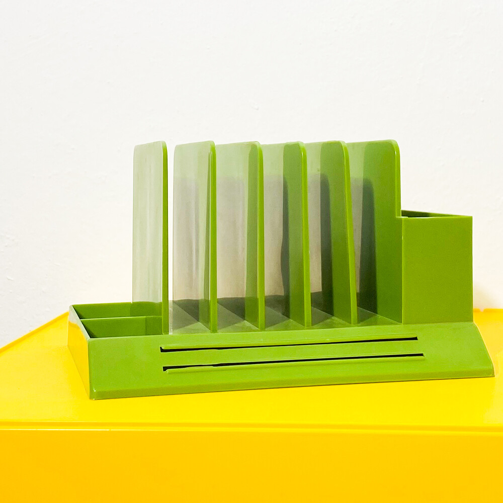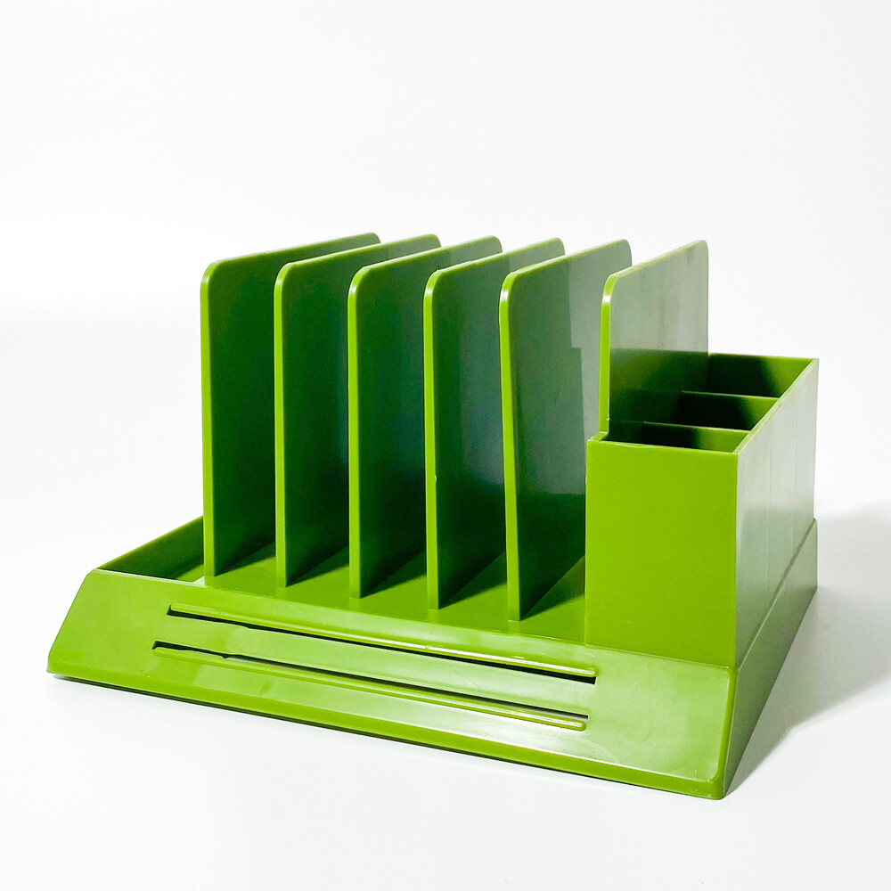 vintage plastic desk organizer green