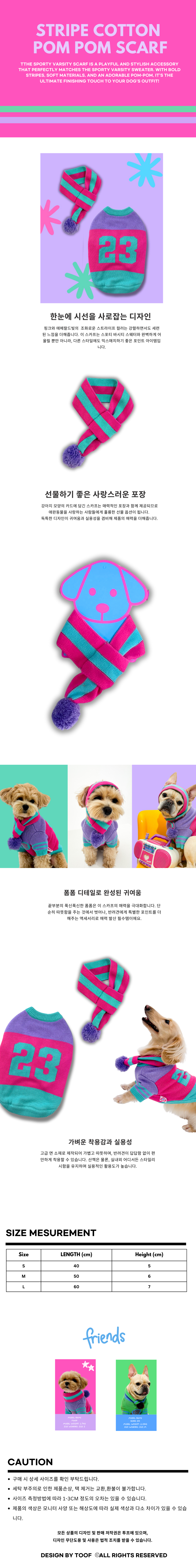 STRIPE COTTON POM POM SCARF - PINK/TURQ
